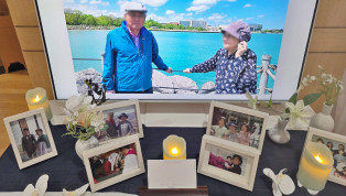 고인의 삶을 회상하며, 유가족과 조문객이 함께