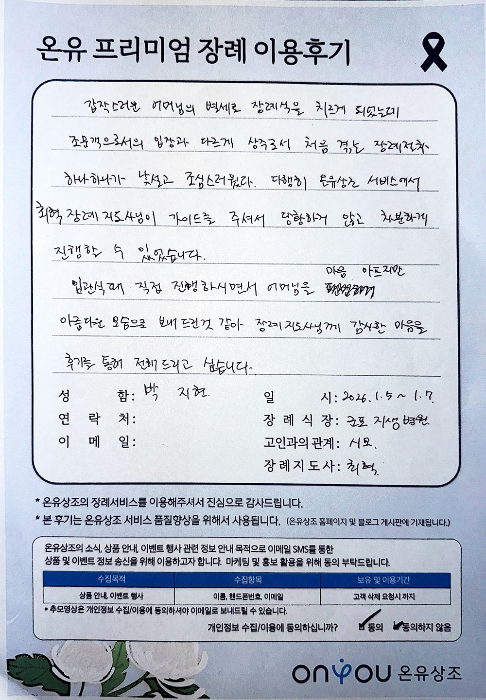 제7조(상조 청약 서비스 제공을 위한 정보)